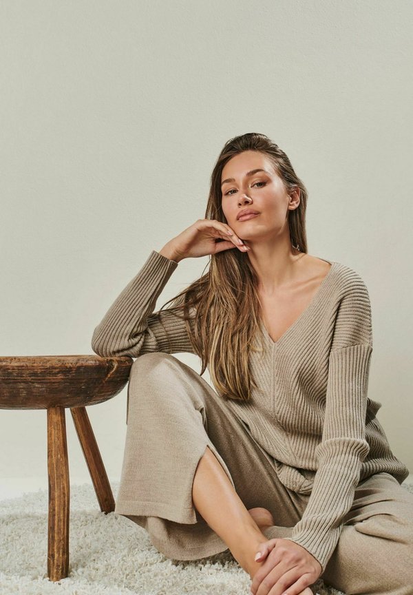 BAILEY – MERINO WOOL KNIT PANTS – Nachtwäsche Hose – taupe