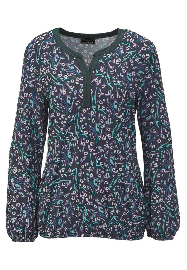Bluse – taubenblau gemustert