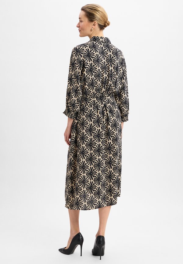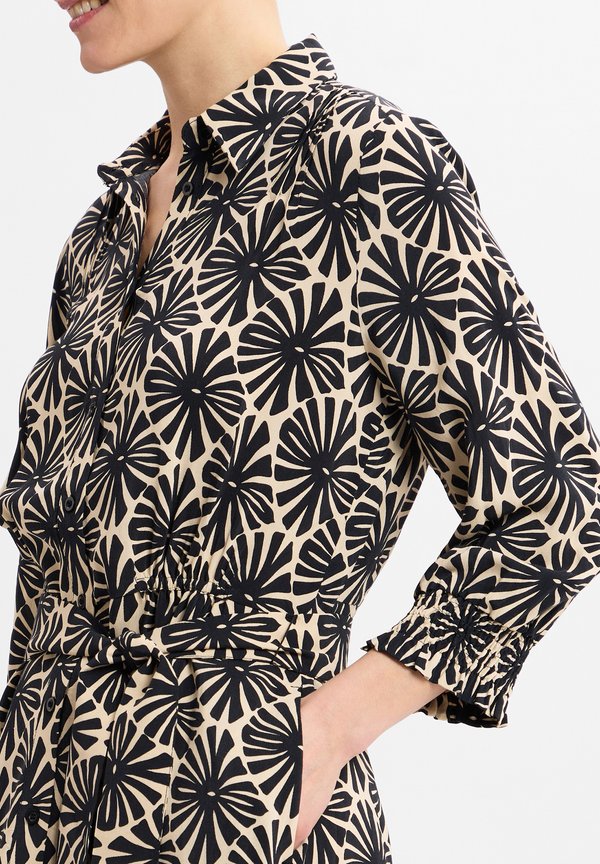 Blusenkleid – beige schwarz
