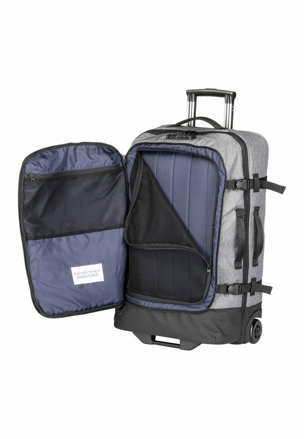 Details : Zwei-Wege-Reißverschluss, Weite und Volumen variierbar, Zahlenschloss, Spanngurte, TSA-Schloss