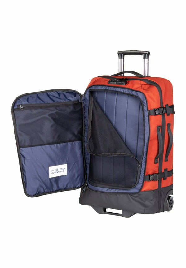 Details : Zwei-Wege-Reißverschluss, Weite und Volumen variierbar, Zahlenschloss, Spanngurte, TSA-Schloss