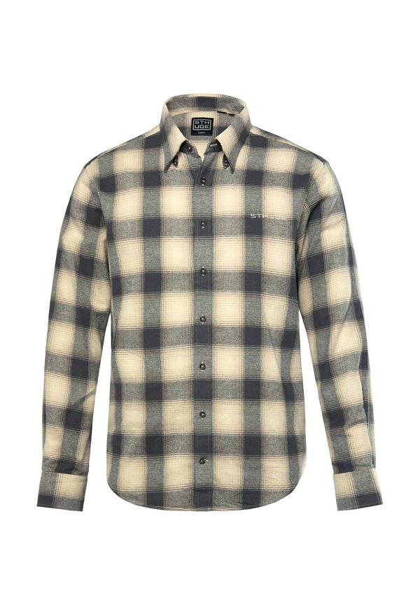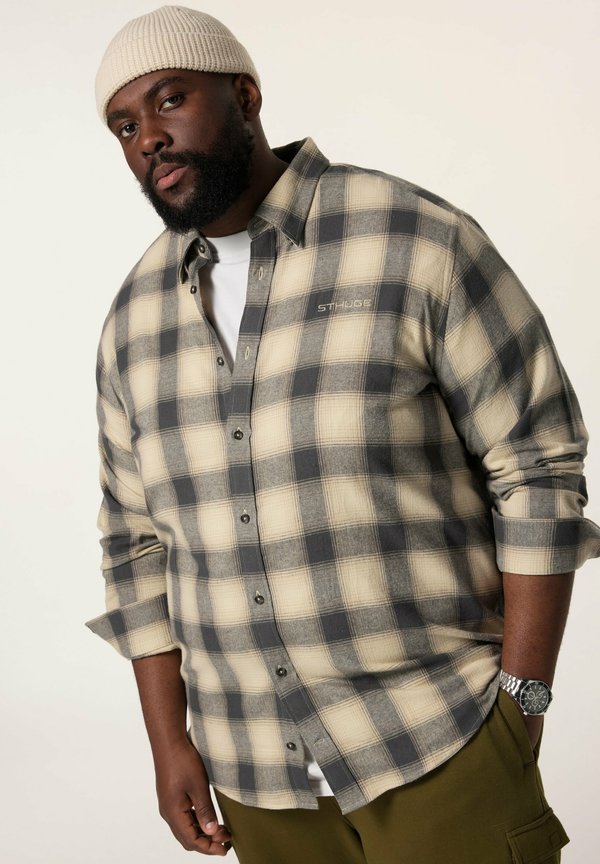 CHECK LONG SLEEVE COVERED BUTTON-DOWN COLLAR – Hemd – beige