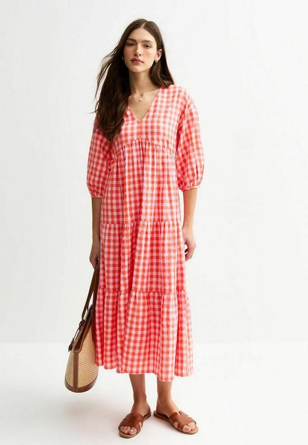 CHECK TIERED MIDI – Freizeitkleid