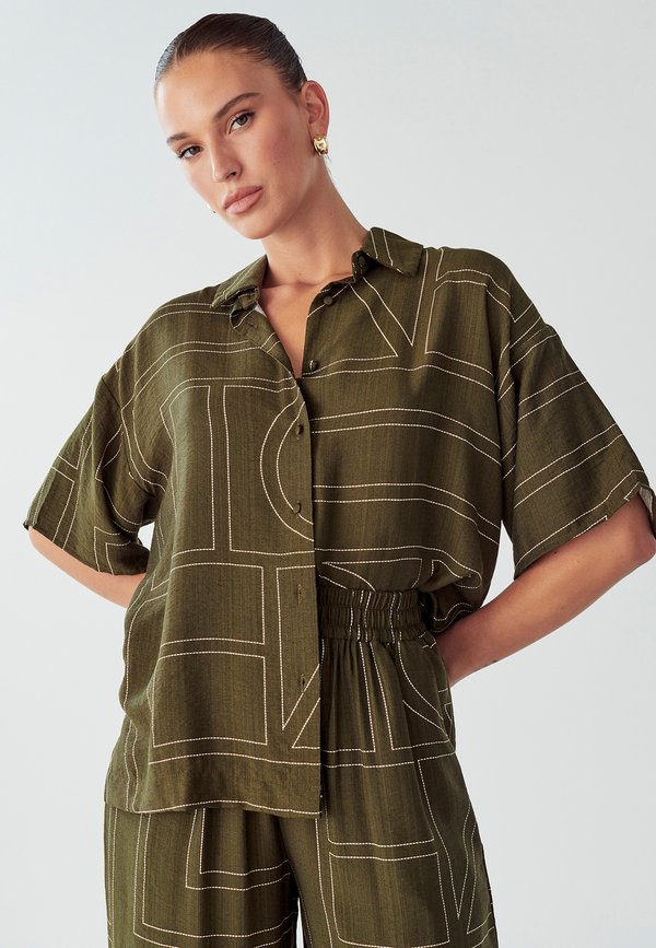 DIANA – Hemdbluse – olive geo