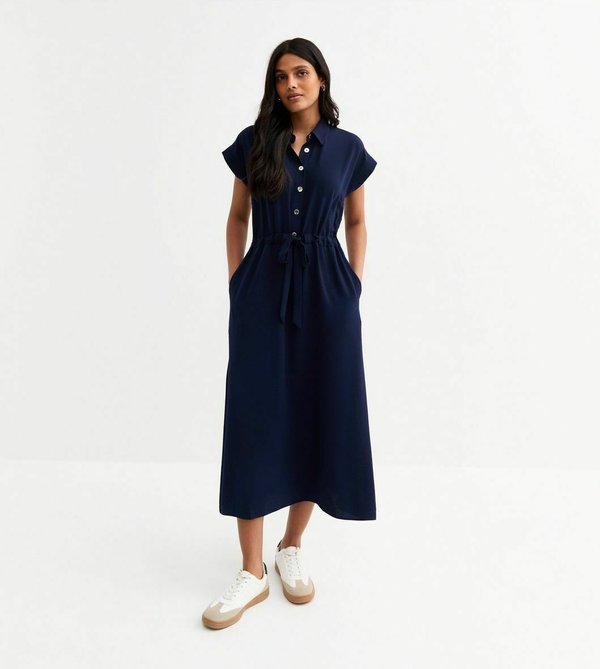 DRAWSTRING WAIST TEXTURED MIDI – Freizeitkleid