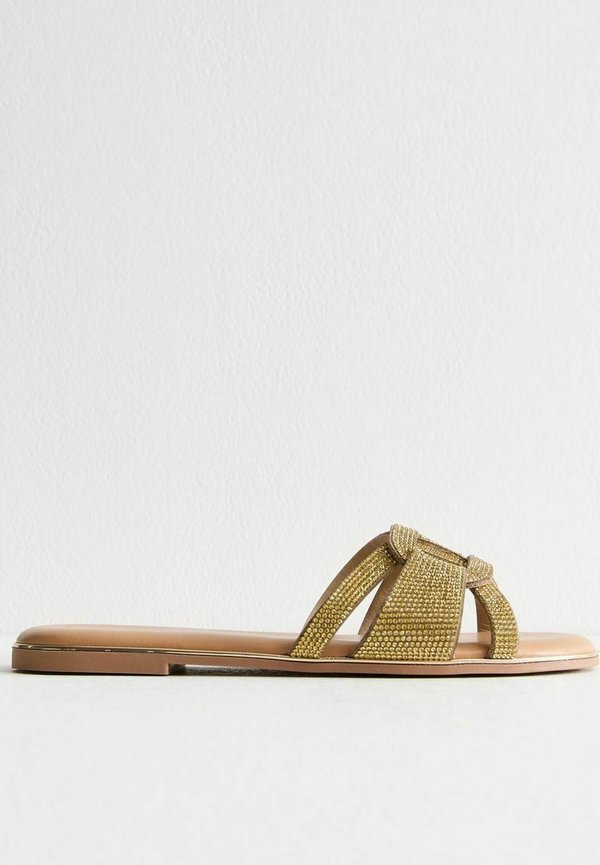 EMBELLISHED STRAP – Pantolette flach – gold