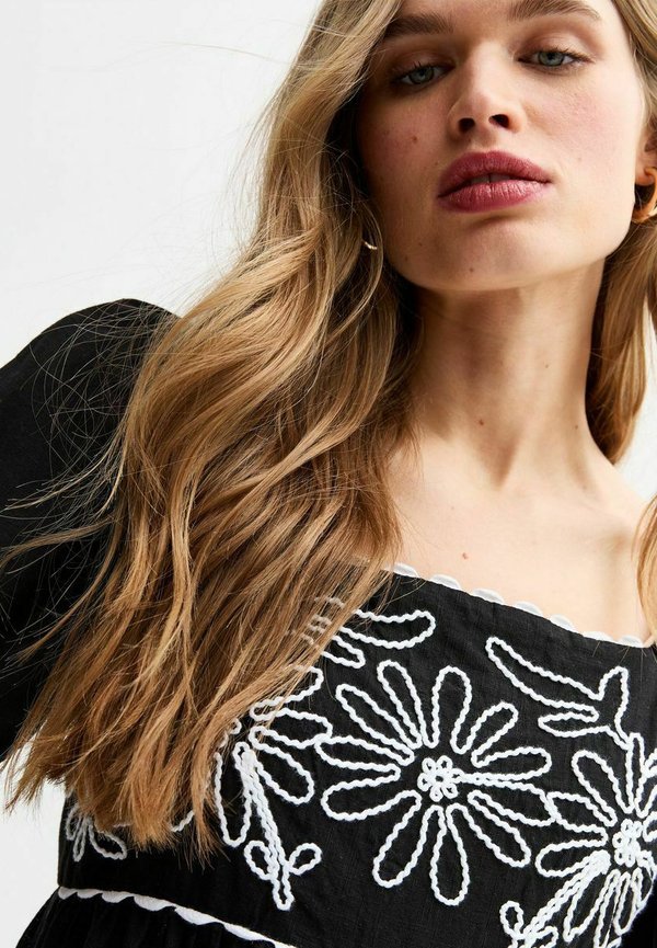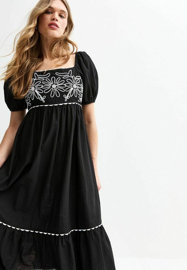 FLORAL EMBROIDERED MIDI SMOCK – Freizeitkleid