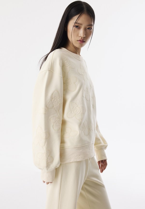 FLOWER EMBROIDERED – Sweatshirt – ecru