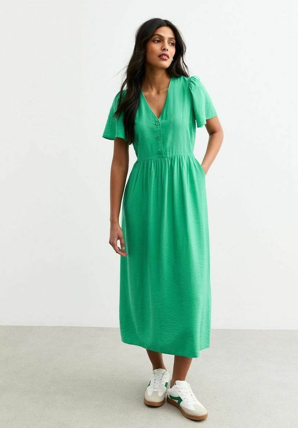 FLUTTER SLEEVE BUTTON FRONT MIDI – Freizeitkleid