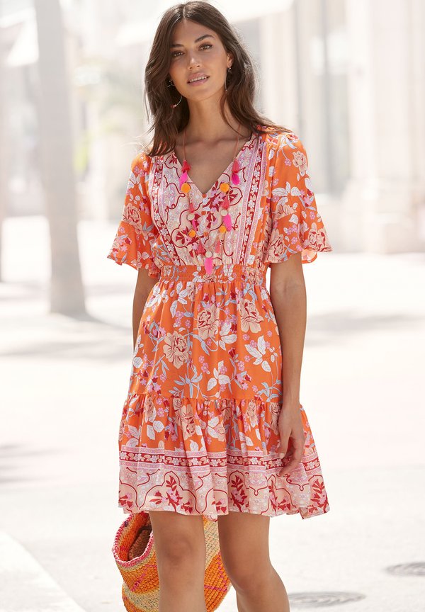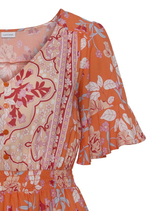 Freizeitkleid – orange bedruckt