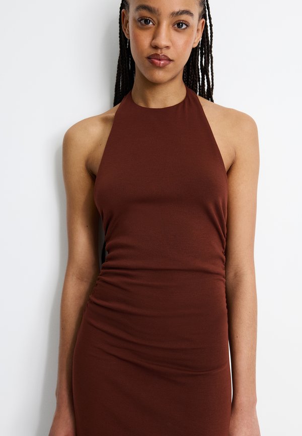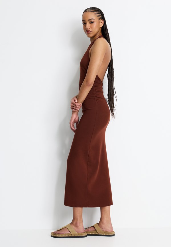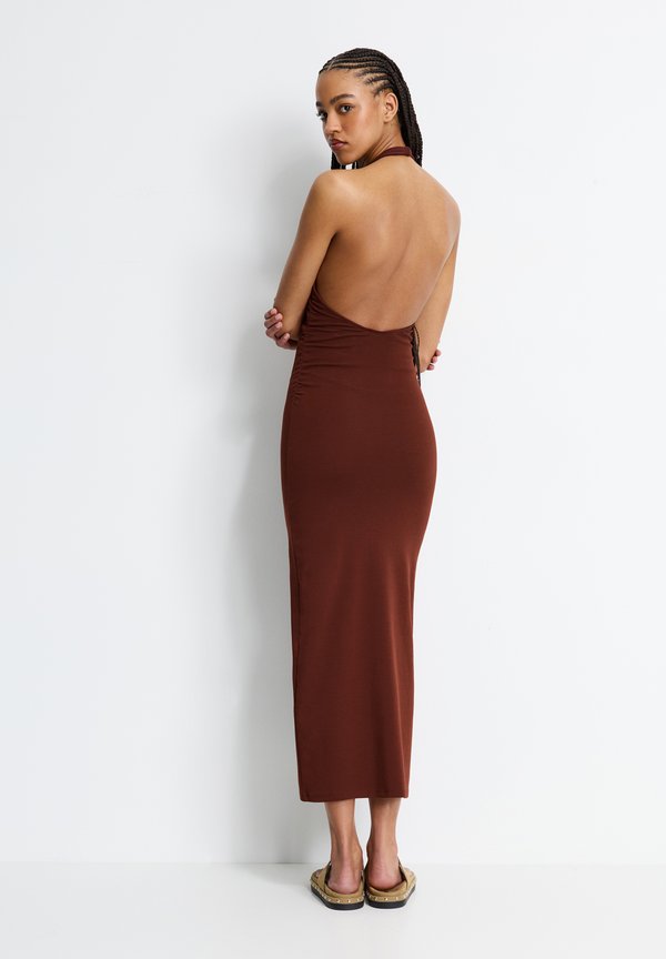GATHERED HALTER – Maxikleid – copper