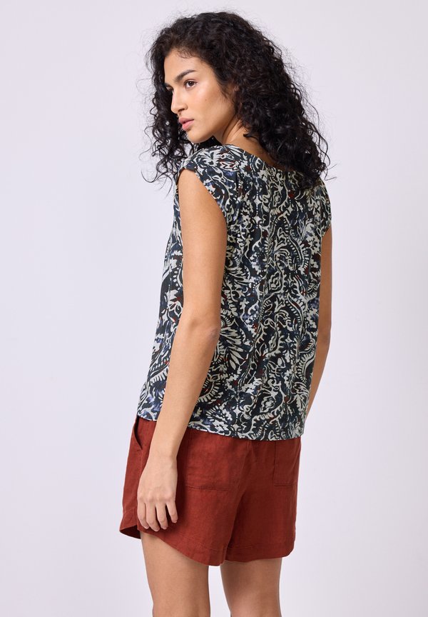 GEMUSTERTES MIT RAFFUNG – Bluse – blau