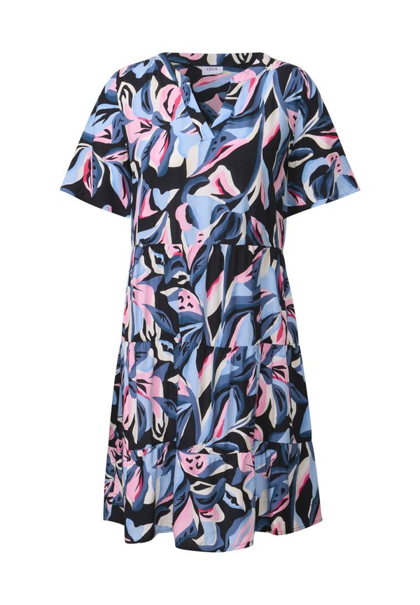 GEMUSTERTES VOLANT – Freizeitkleid – blau
