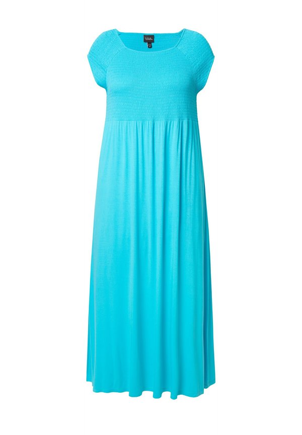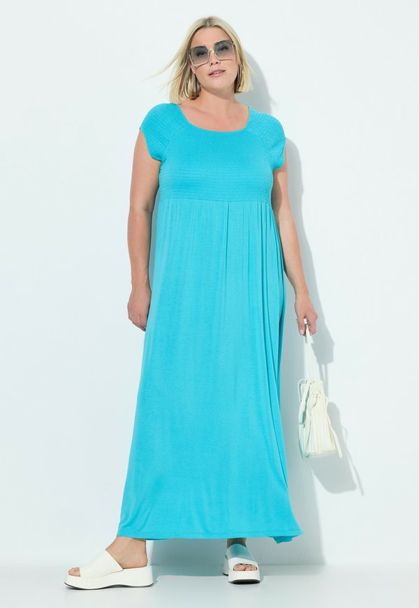 GESMOKTE CARRÉHALS – Strickkleid – deep aqua