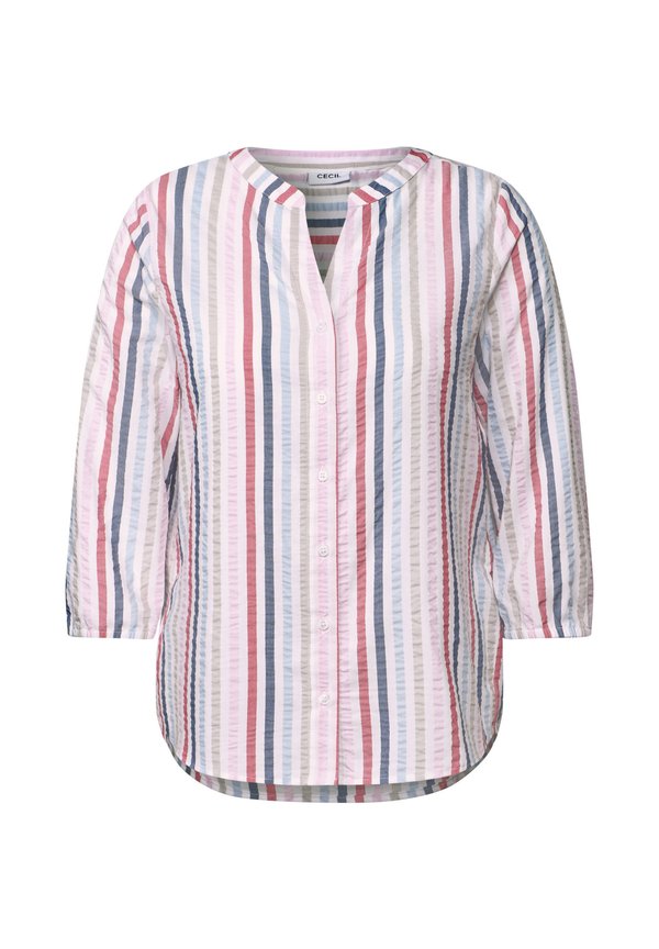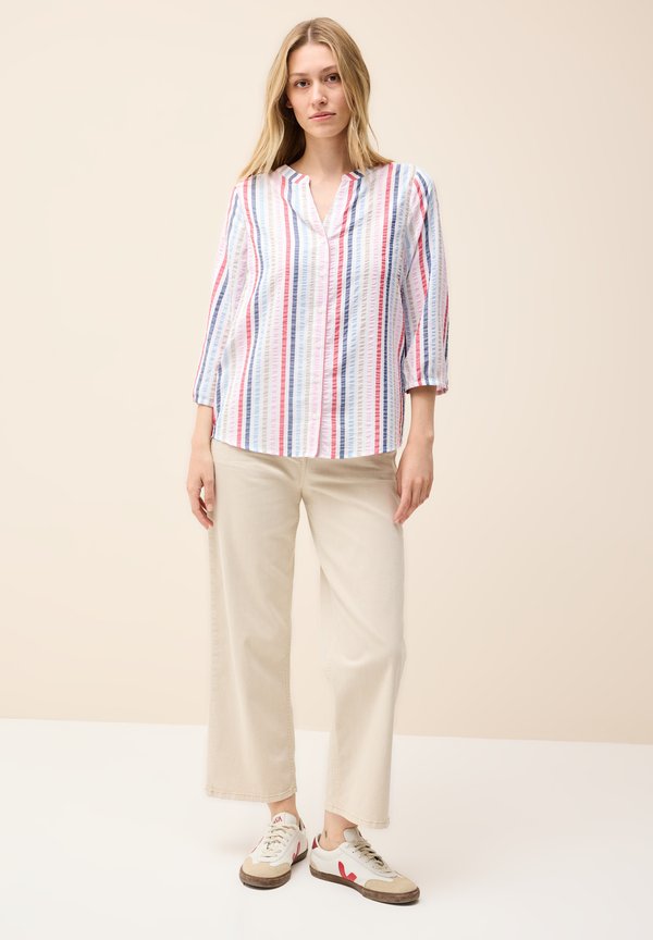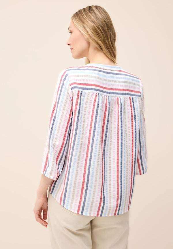 GESTREIFTE SPLIT NECK – Bluse – weiß