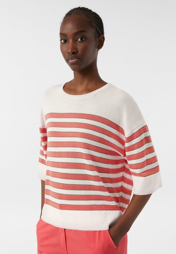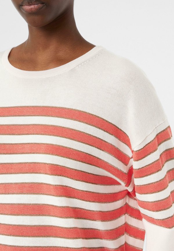 GESTREIFTER MIT GLITZERGARN – Strickpullover – koralle