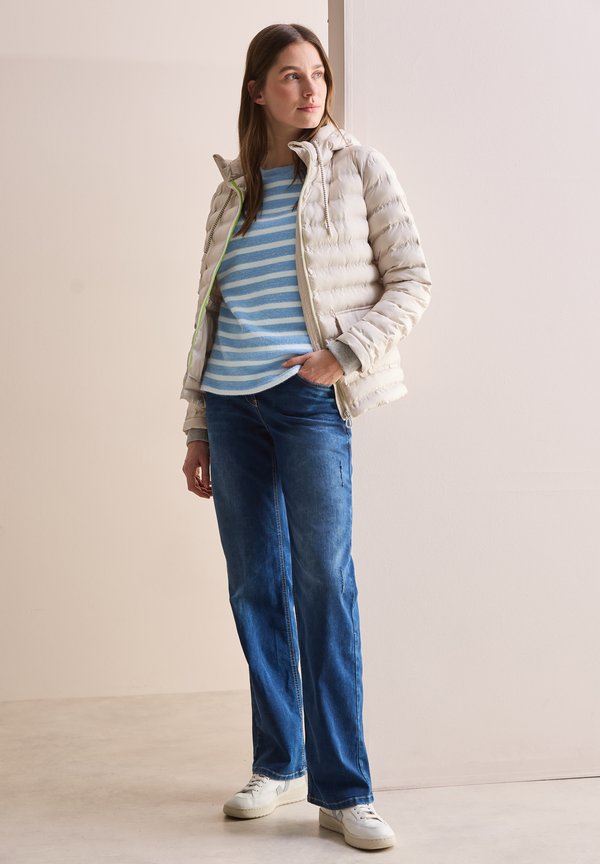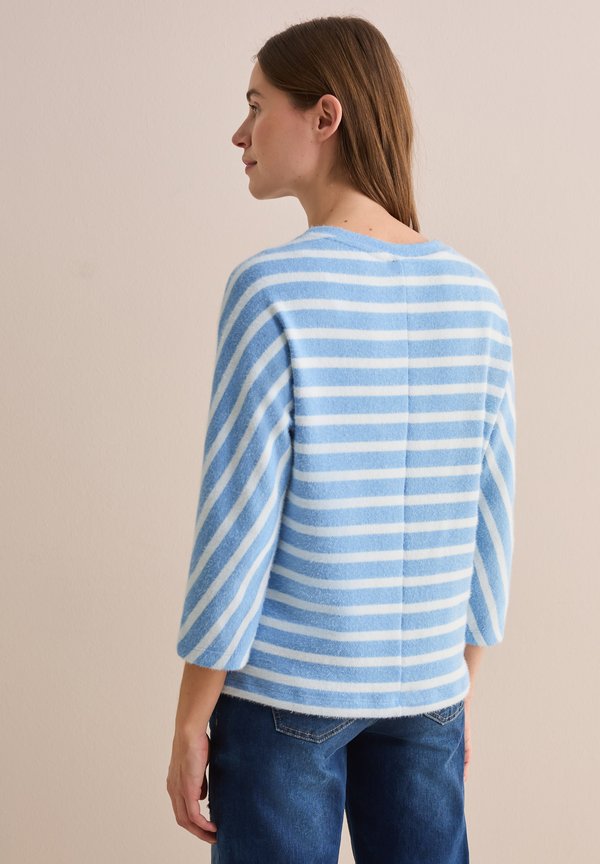 GESTREIFTES FEDERGARN – Strickpullover – blau