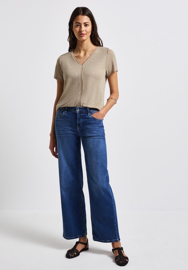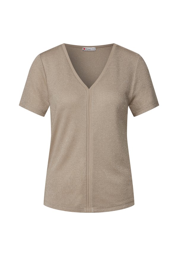 GLITZER-MIT TAPEDETAIL – T-Shirt basic – beige