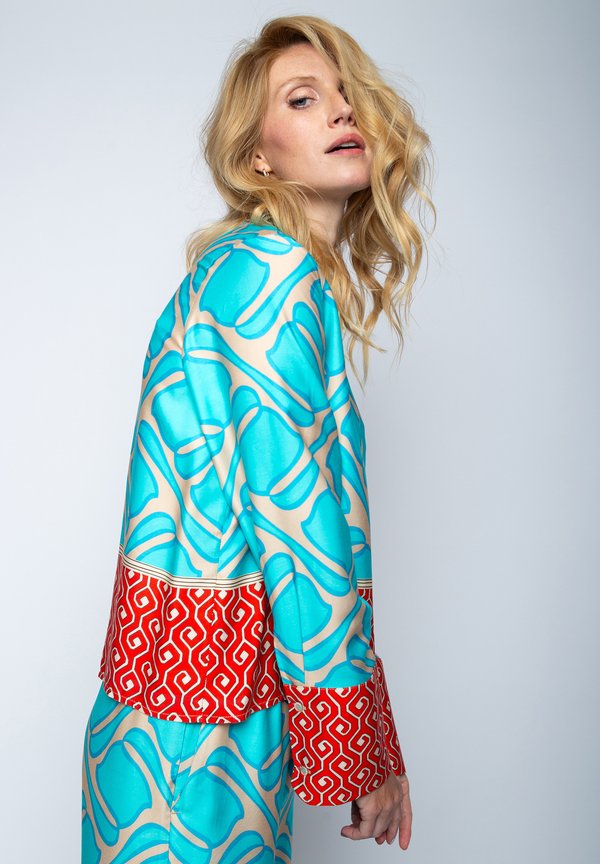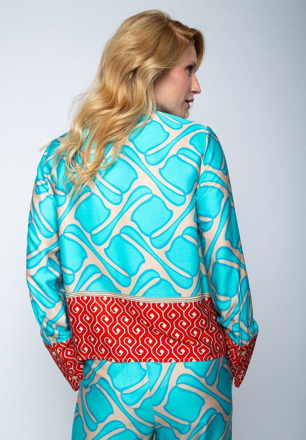 Hemdbluse – aqua coral border