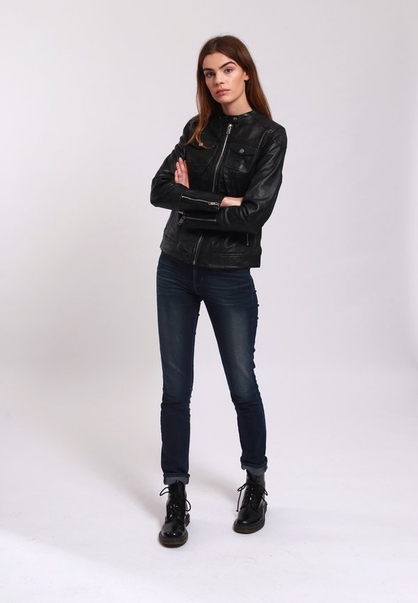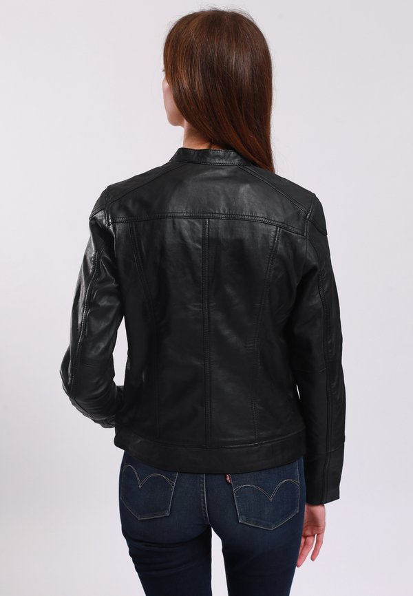 LEATHER JACKET WITH ROUND COLLAR AND PUSH BUTTON CLOSURE – – Lederjacke
