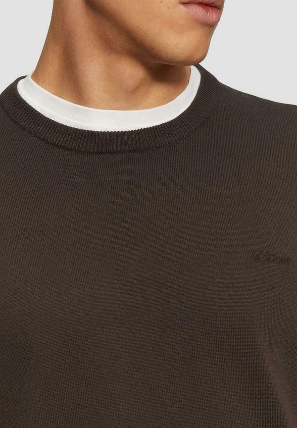 LOGO-STICKEREI – Strickpullover – braun