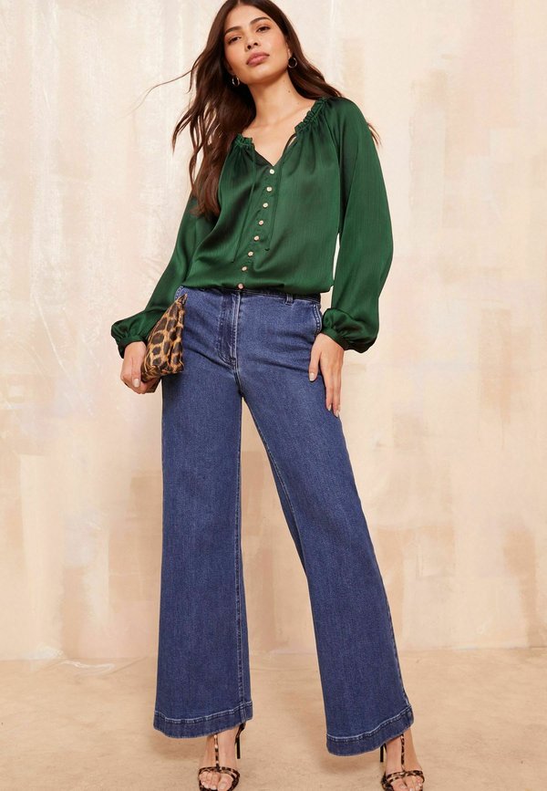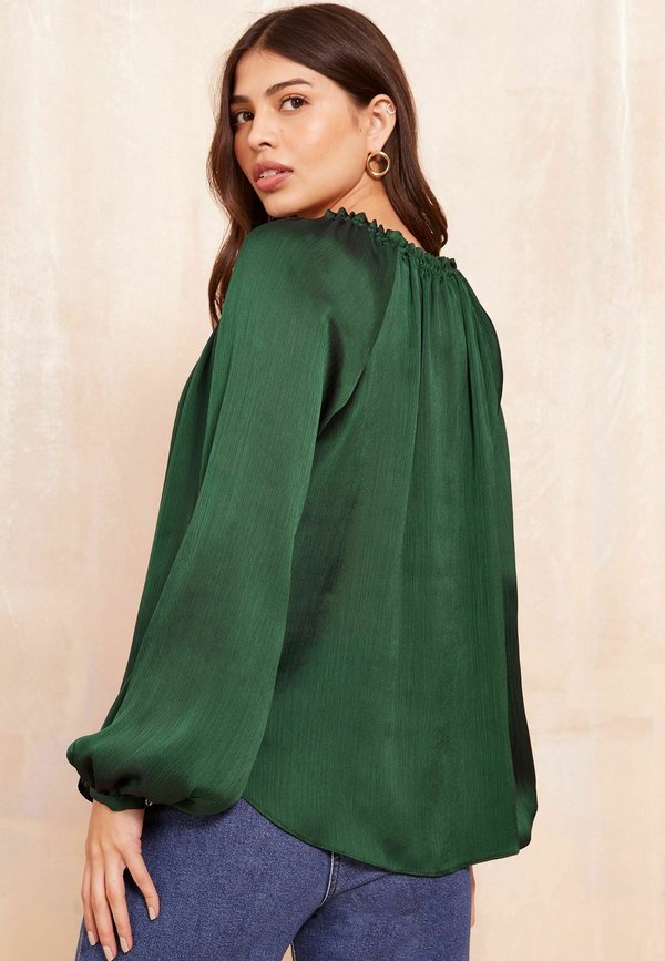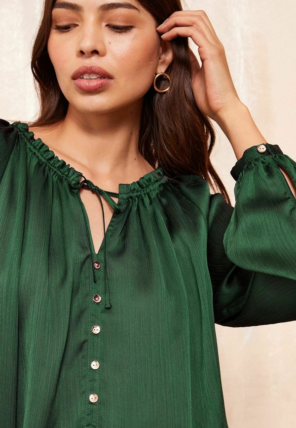 LONG SLEEVE BUTTON FRONT FOIL – Bluse
