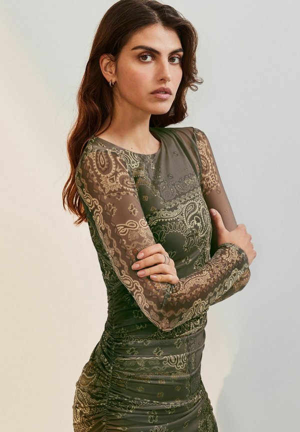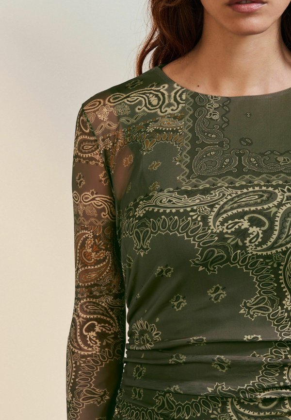 | Color | khaki green scarf print |