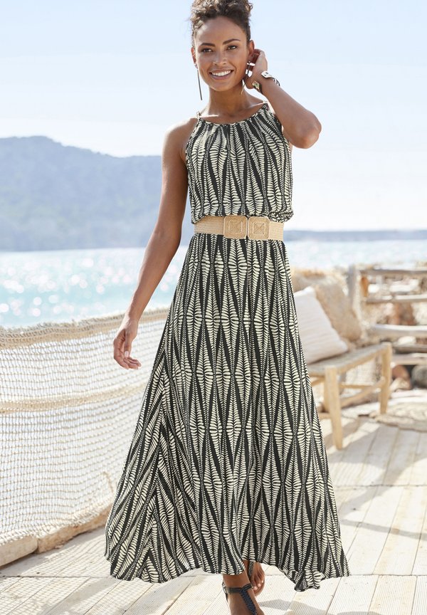 Maxikleid – schwarz sand bedruckt