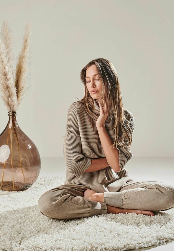 MERINO WOLLE HAUSANZUG SET ZWEITEILER – Nachtwäsche Set – taupe