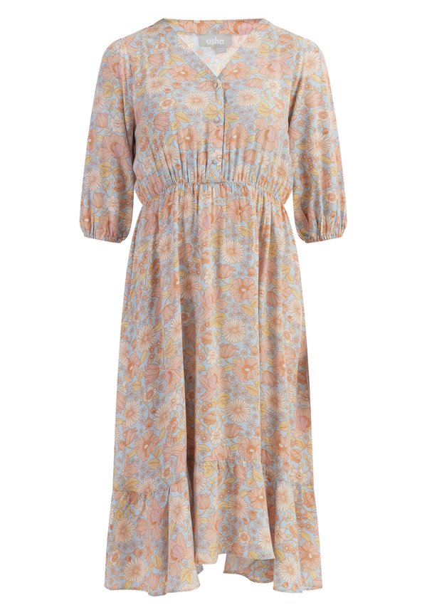 MIDI MIT BLUMENPRINT – Freizeitkleid – blau mehrfarbig