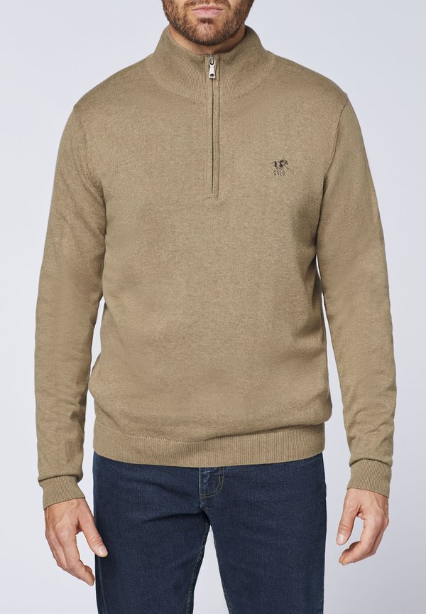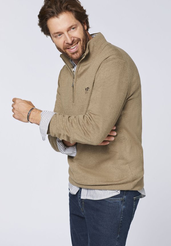 MIT KURZEM ZIPPER – Strickpullover – m greige melange