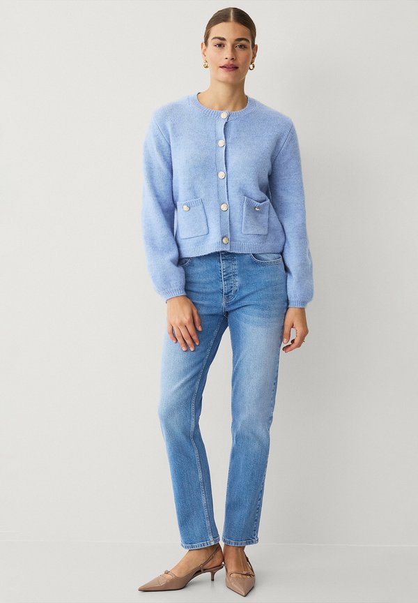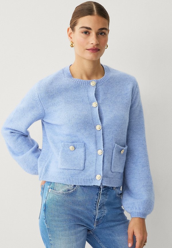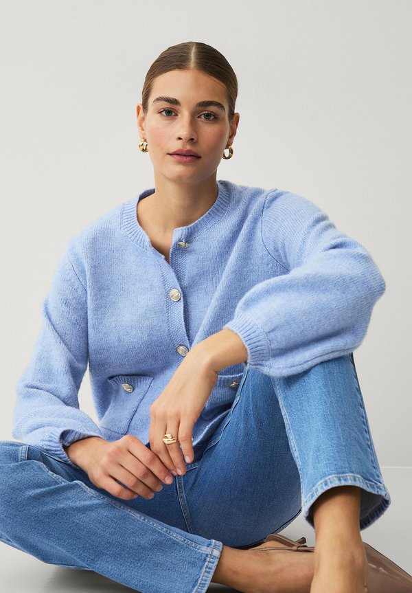 MIT LANGEN PUFFÄRMELN – Strickjacke – hellblau