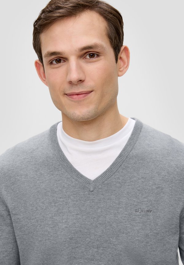MIT LOGOSTICKERE – Strickpullover – grau