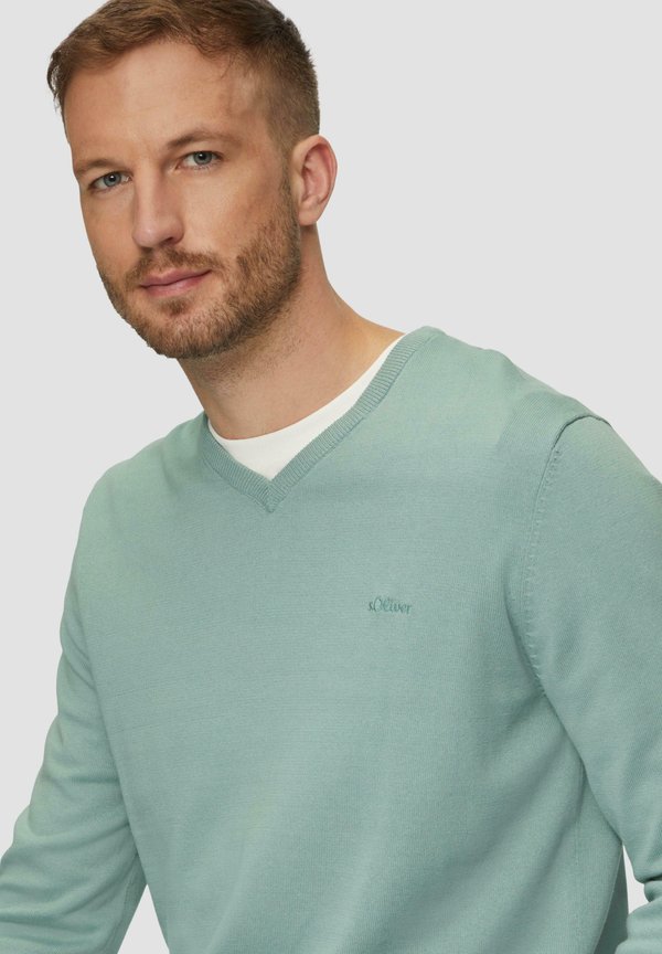 MIT LOGOSTICKERE – Strickpullover – salbeigrün