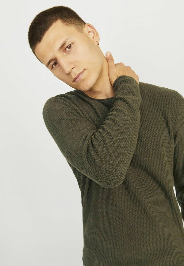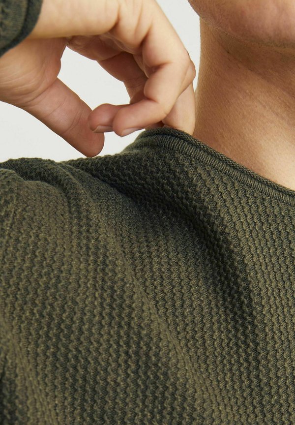 MIT RUNDHALS – Strickpullover – olive night