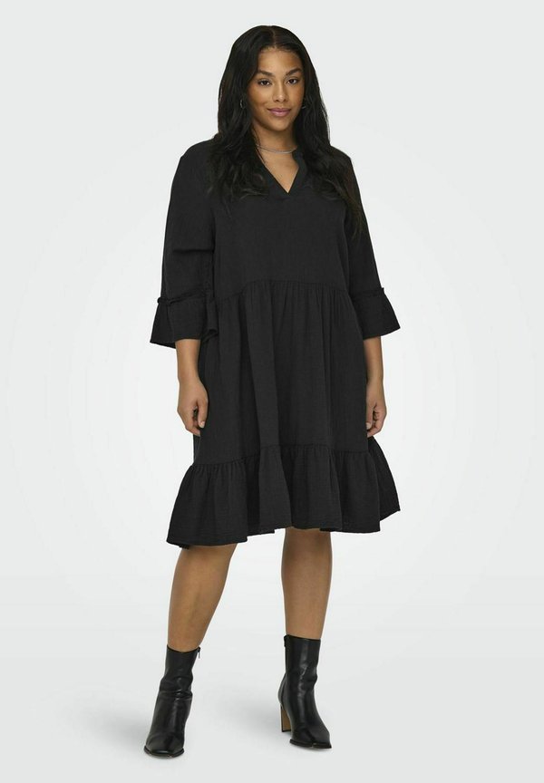 MIT SCHOSSCHEN NORMAL GESCHNITTEN SPLIT NECK CURVE – Freizeitkleid