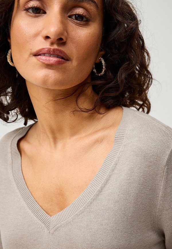 MIT V-AUSSCHNITT – Strickpullover – beige