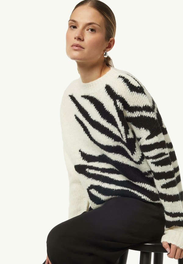 MIT ZWEIFARBIGEN INTARSIEN – Strickpullover – weiß