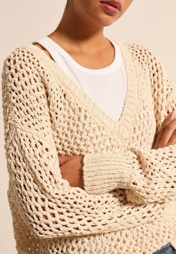 OPENWORK WITH V NECK – Strickpullover – light beige