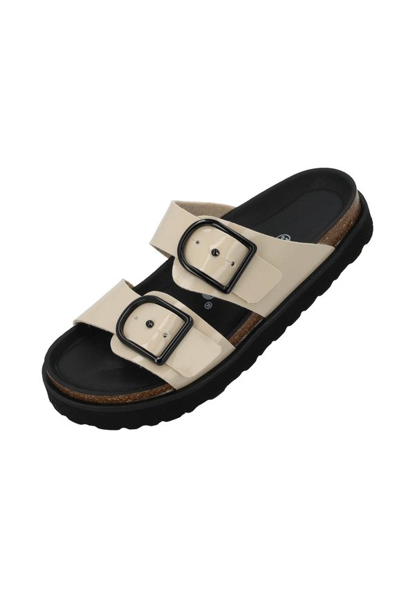Pantolette flach – beige lack
