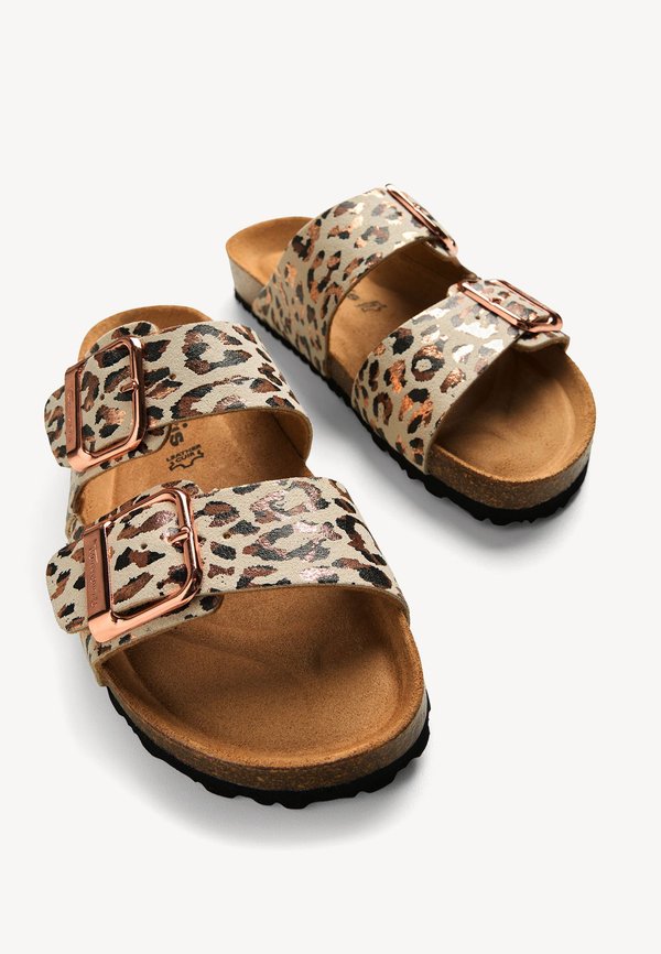 Pantolette flach – beige leopard