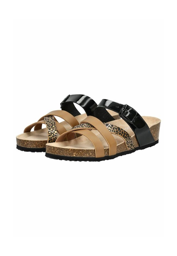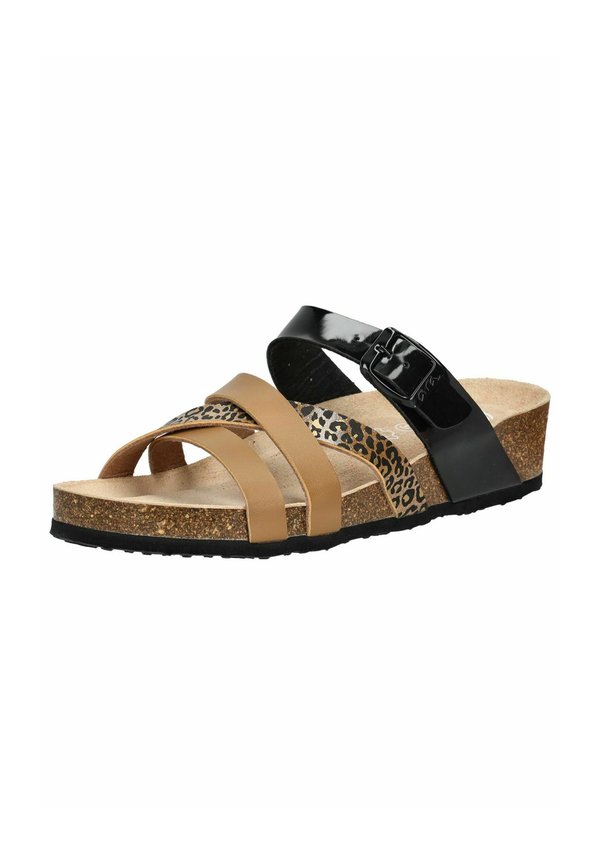 Pantolette flach – cognac multi