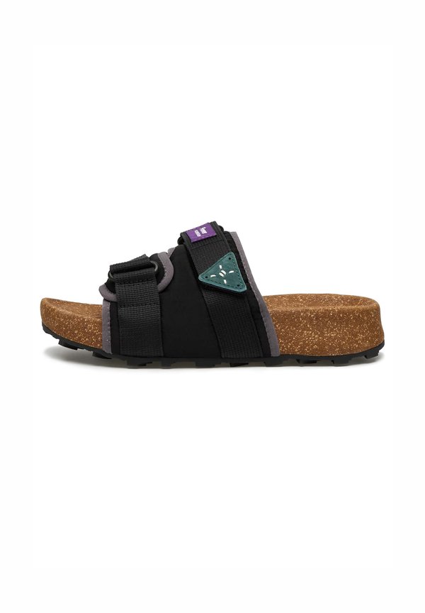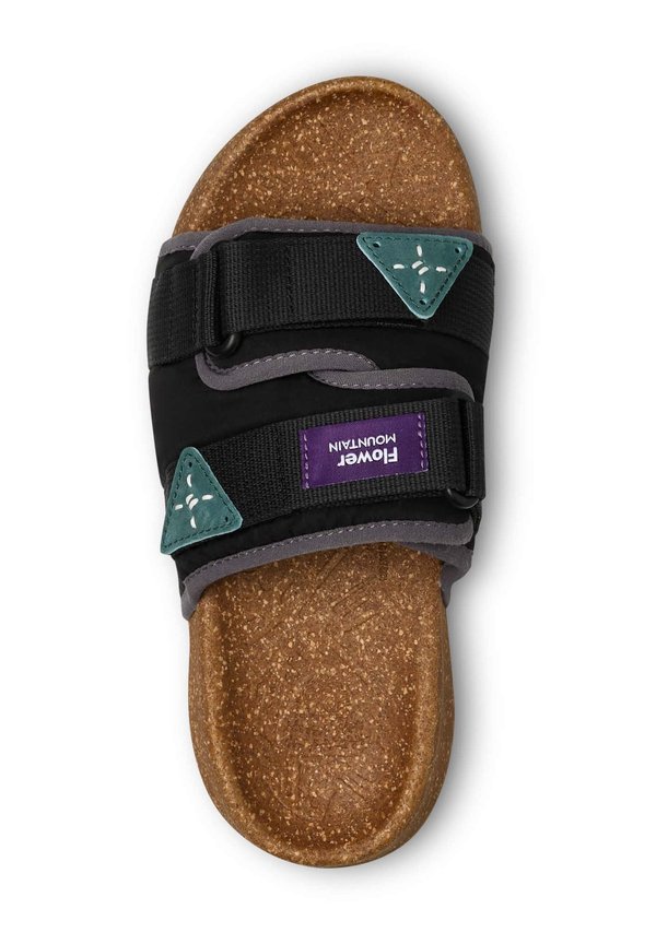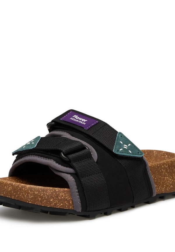 Pantolette flach – grau schwarz