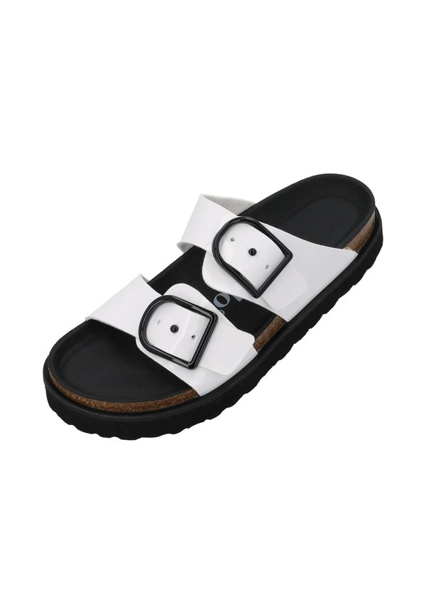 Pantolette flach – weiß lack