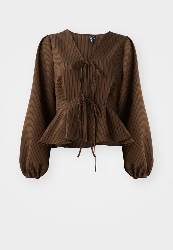 PCNANNIE VNECK TIE – Bluse – chicory coffee