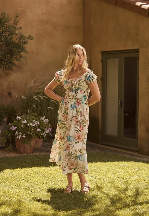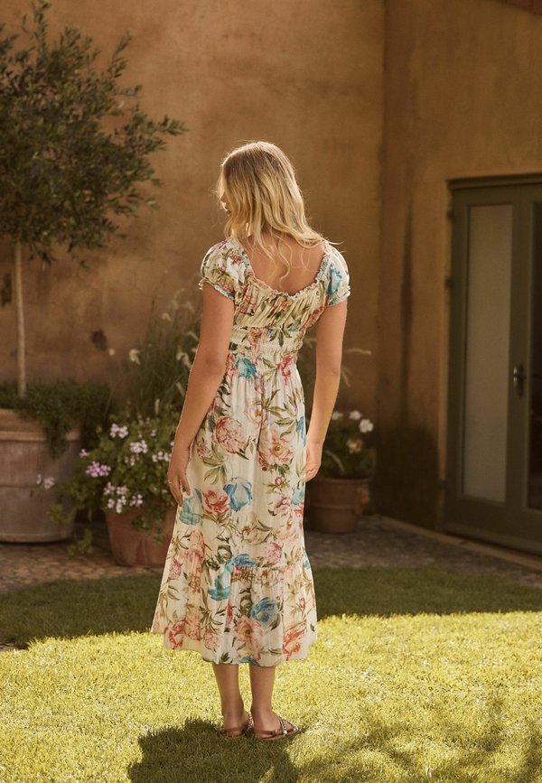 | Color | cream blue and pink floral print |