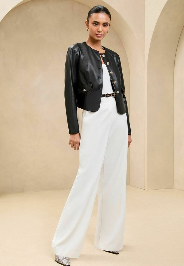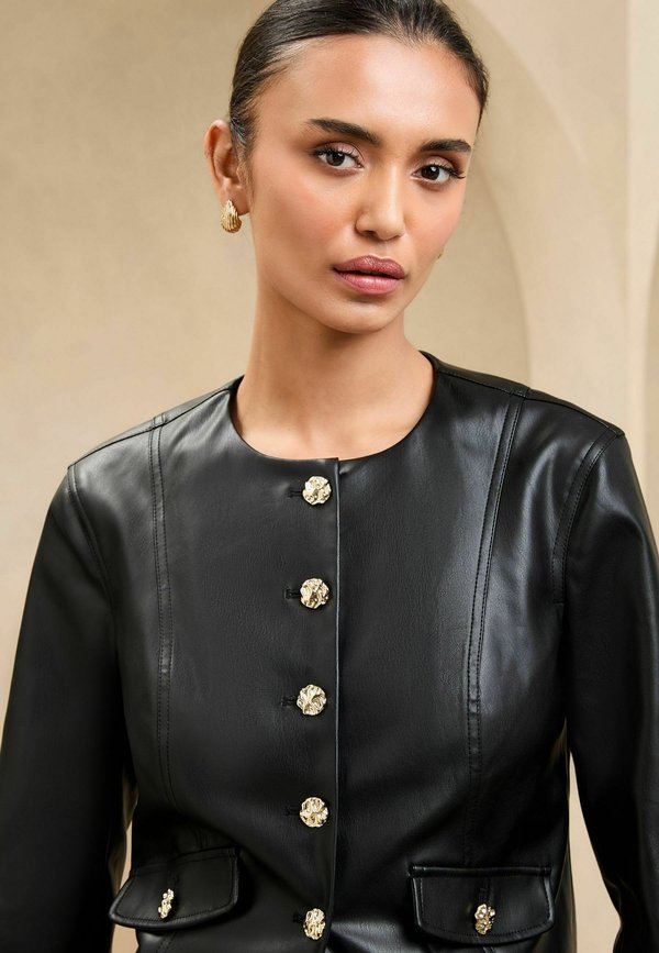 | Color | black faux leather |