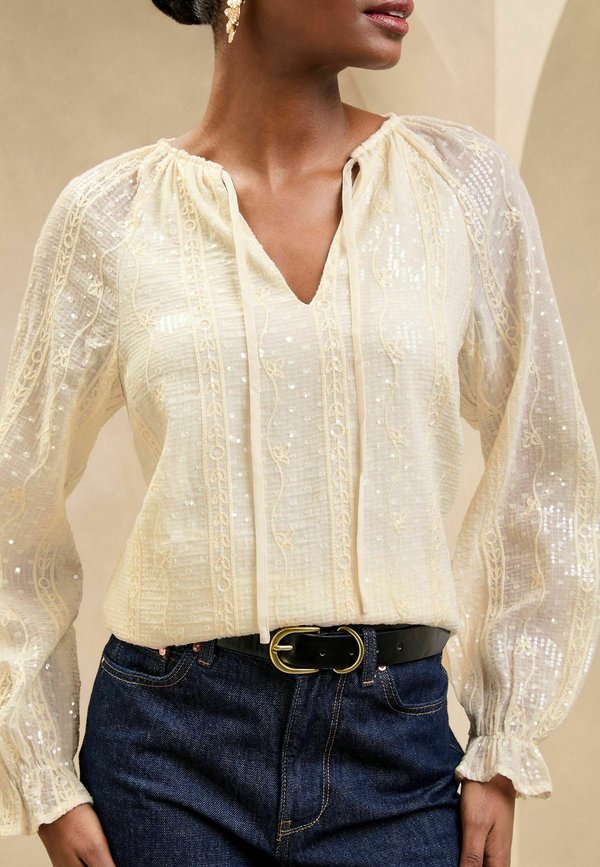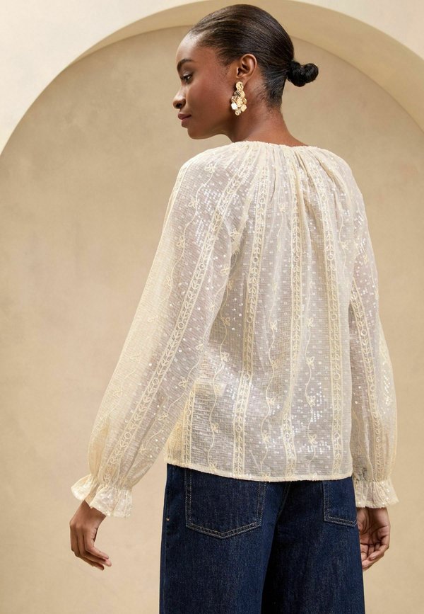 REGULAR FIT – SEQUIN EMBROIDERED – Bluse – cream