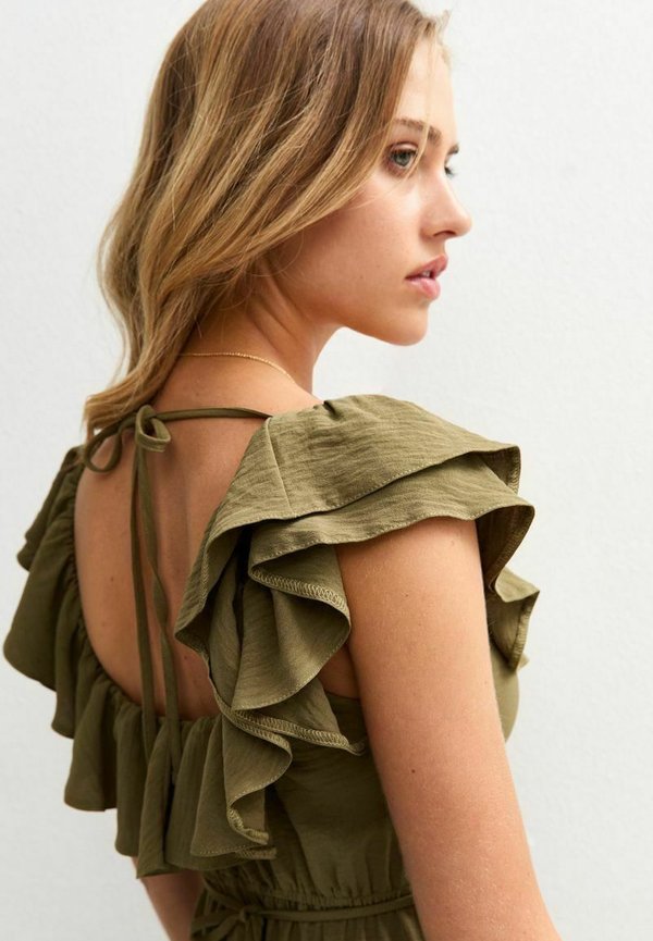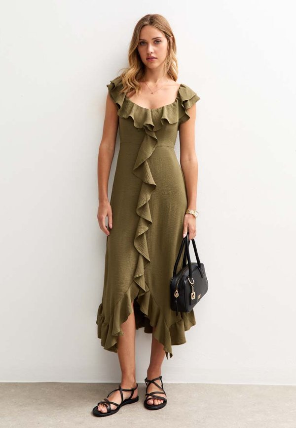RUFFLED ASYMMETRIC MIDI – Freizeitkleid – khaki