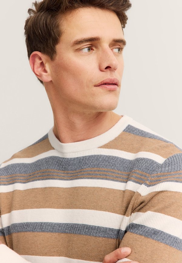 RUNDHALS GESTREIFT – Strickpullover – beige